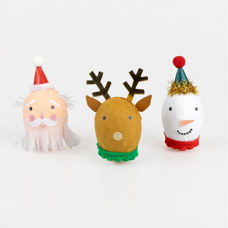 - Коробка из 3 шариков-сюрпризов, включая Санту, снеговика и оленя.